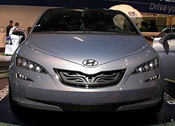 | Studie velkého van/kombi/offroadu Hyundaie. Agresivní vzezření, zajímavá mřížka předního chladiče a respekt budící rozměry. Zajímavé. | Co to na nás zase frantíci ušili! Moto-coupé, bláznivá dvoumístná tříkolka s neuvěřitelným zadním kolem, na to bych pneumatiky vážně shánět nechtěl:-) Ovšem věřím, že s tím musí být zábava. |